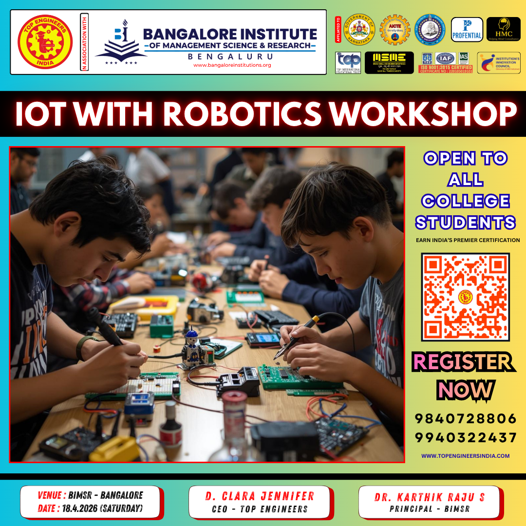 CERTIFICATE FROM TOP ENGINEERS WITH ISO CERTIFIED NUMBER AND HOLOGRAM STICKER WILL BE PROVIDED BY THE END OF THE WORKSHOP WHICH WILL ADD VALUE DURING PLACEMENTS.
